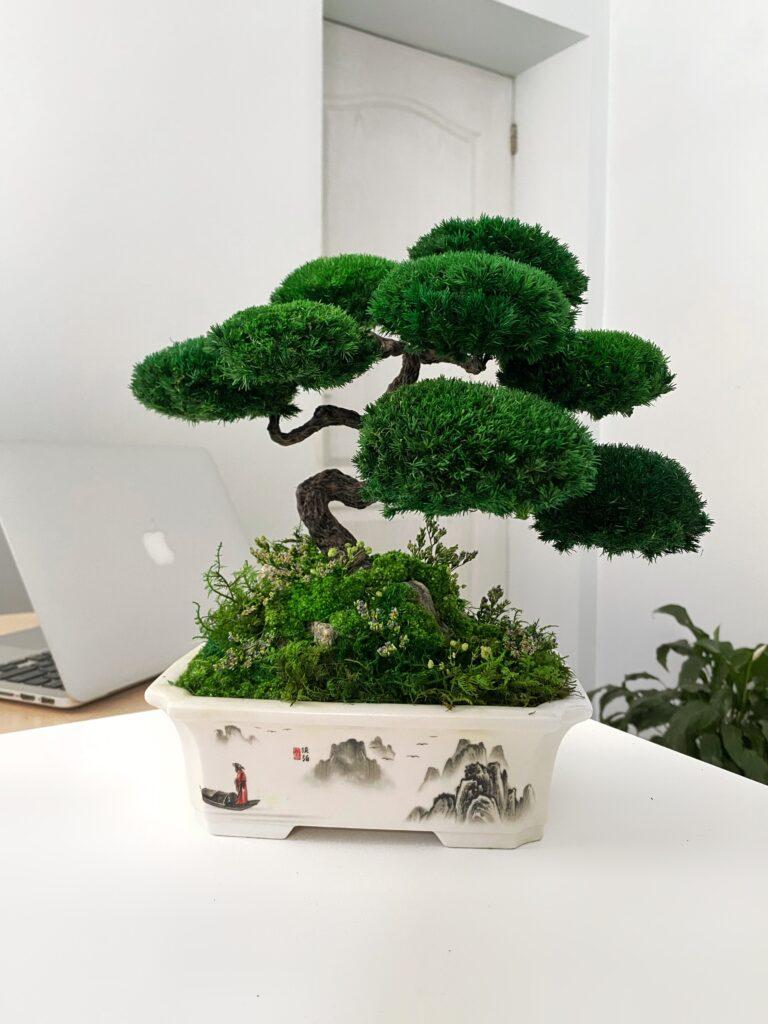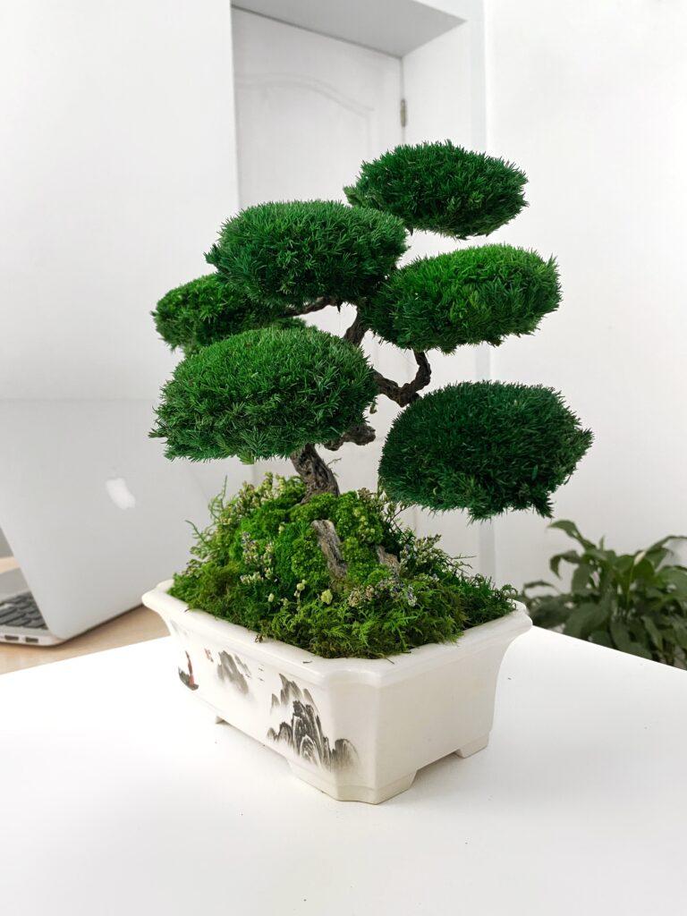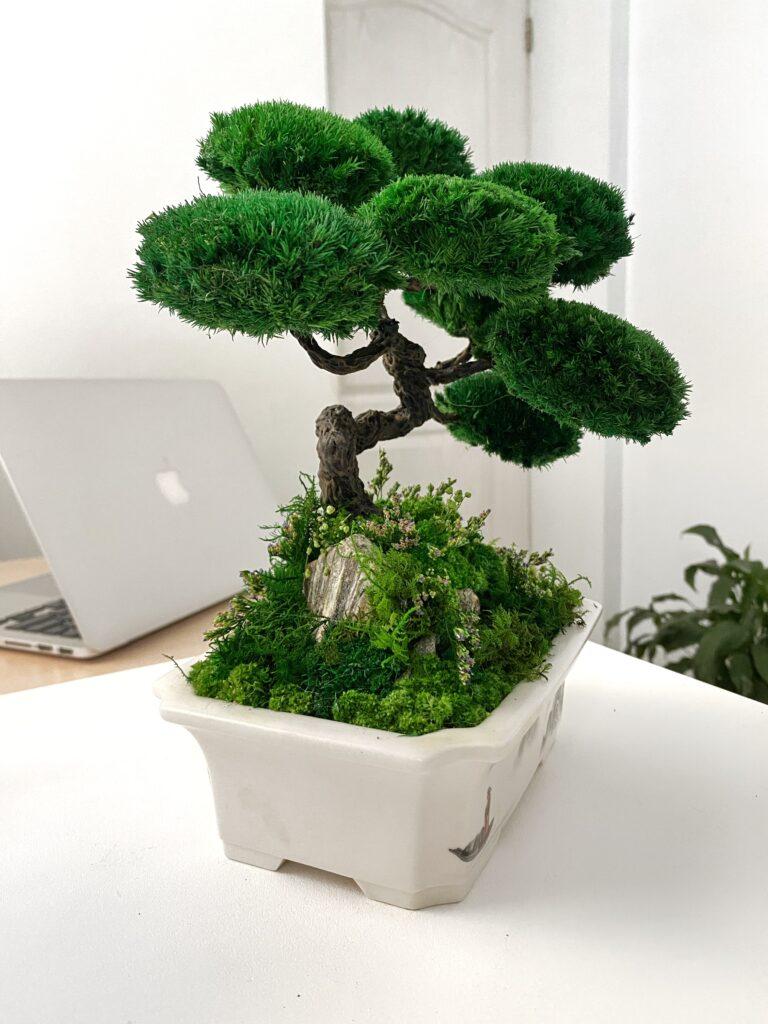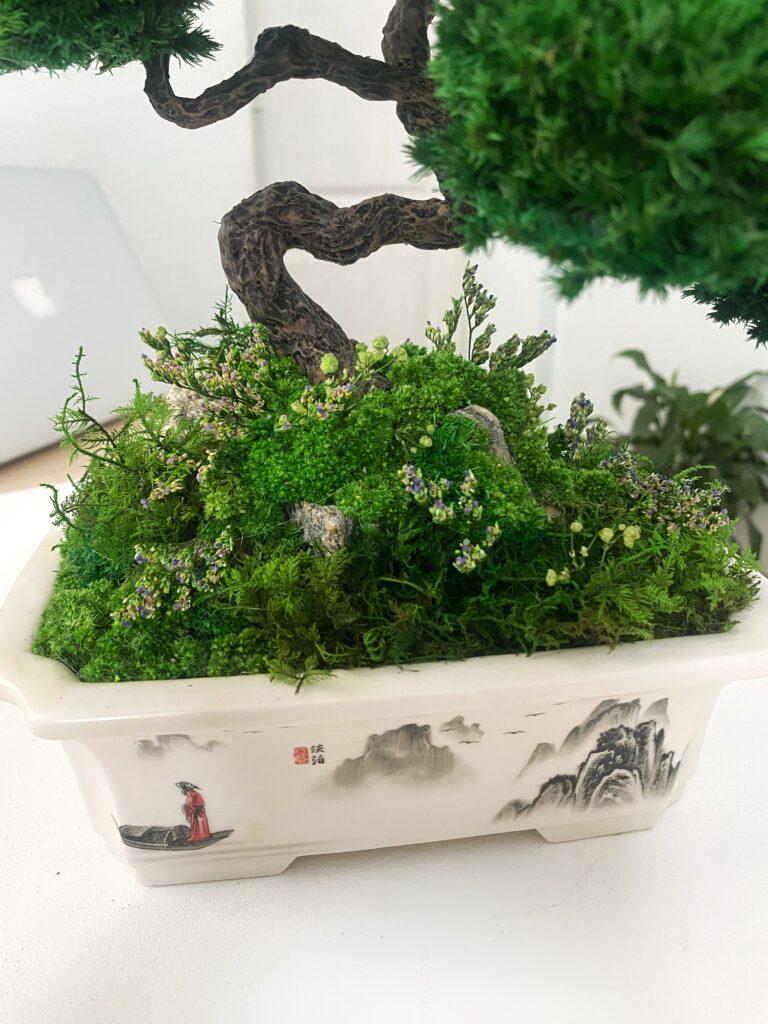 Моссаріум виготовлений зі стабілізованих рослин. Не вимагає догляду, поливу та сонячного світла.