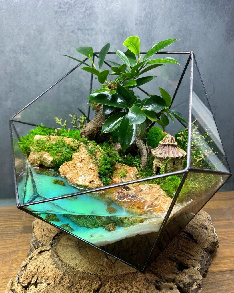 Геометричний флораріум з Бонсай “Будинок у лісі” – 20 см
