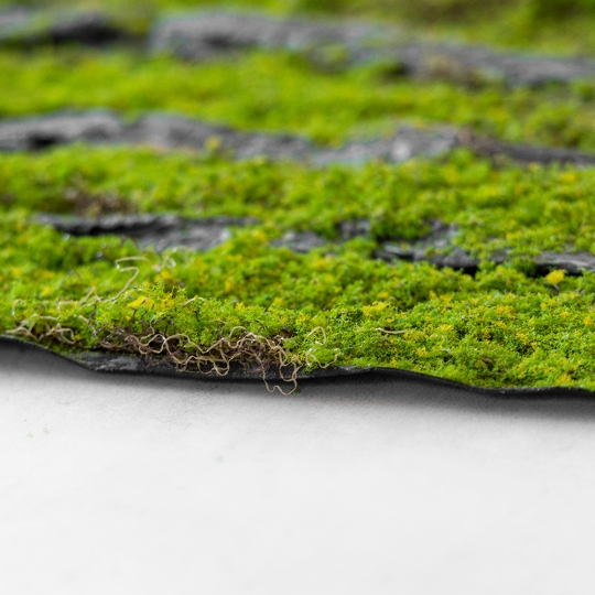 Рельєфна панель зі штучного моху та кори ідеально відтворює атмосферу дикого лісу прямо в інтер’єрі. Деталізована текстура моху та вставки під деревну кору роблять цю панель яскравим акцентом для декору стін, вітрин, фотозон або природних куточків у ресторанах і SPA. Основа з м’якої чорної губки легко монтується та гнеться, підходить для різних поверхонь. Таке покриття надає простору затишку та природної гармонії.