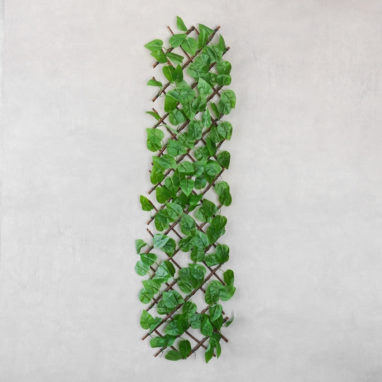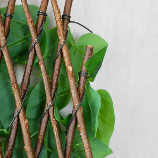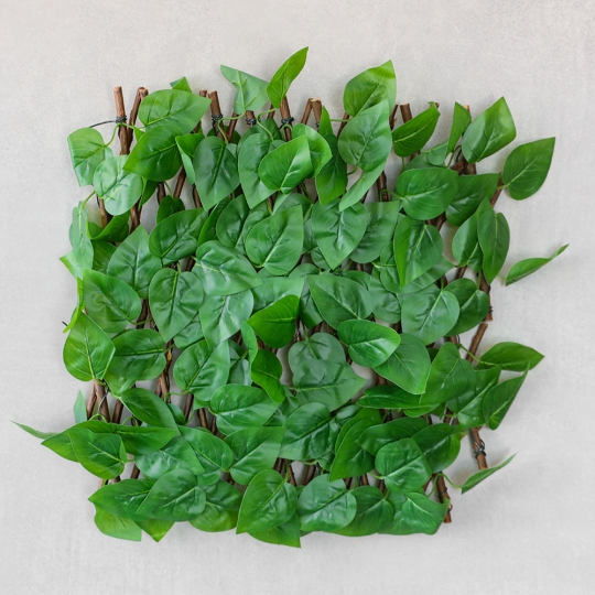 Декоративна панель “Фікус” виготовлена з натуральної лози та штучного листя на текстильній основі з силіконовим покриттям. Гнучка конструкція на дроті дозволяє розтягувати фітомодуль по вертикалі або горизонталі. Ідеально підходить для зонування, створення перегородок, оформлення фотозон, стін і терас. Панель легко монтується, не потребує догляду й надає простору свіжості, відчуття природи та візуального об’єму.