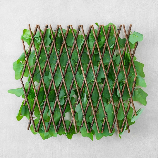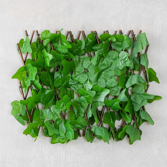 Декоративна панель “Плющ” виготовлена з лози та штучного листя на текстильній основі з силіконовим покриттям. М’яка й гнучка конструкція дозволяє зручно розтягувати фітомодуль по горизонталі або вертикалі. Ідеально підходить для оздоблення стін, перегородок, вітрин, фотозон і терас. Виріб легко монтується, не потребує догляду та створює природний зелений акцент у приміщенні або на вулиці. Стильно, практично та функціонально.
