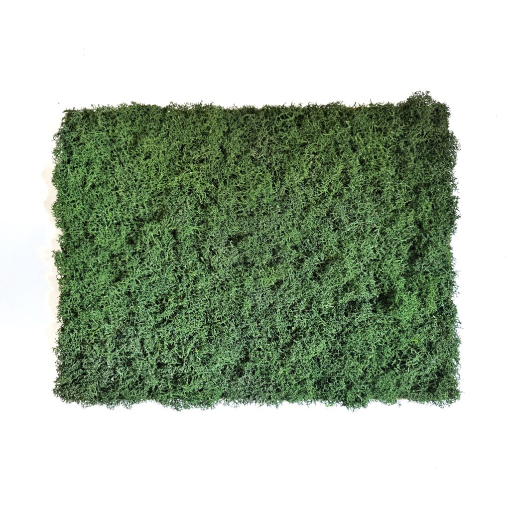 Гнучке покриття виконано зі стабілізованого моху ягель зеленого кольору. Основа — гнучкий корковий лист 3 мм, що дозволяє легко монтувати на стіни, ніші чи декоративні панелі. Ідеально підходить для створення фітостін, зон відпочинку чи екоінтер’єрів. Розмір можна виготовити за запитом клієнта під індивідуальне замовлення.
