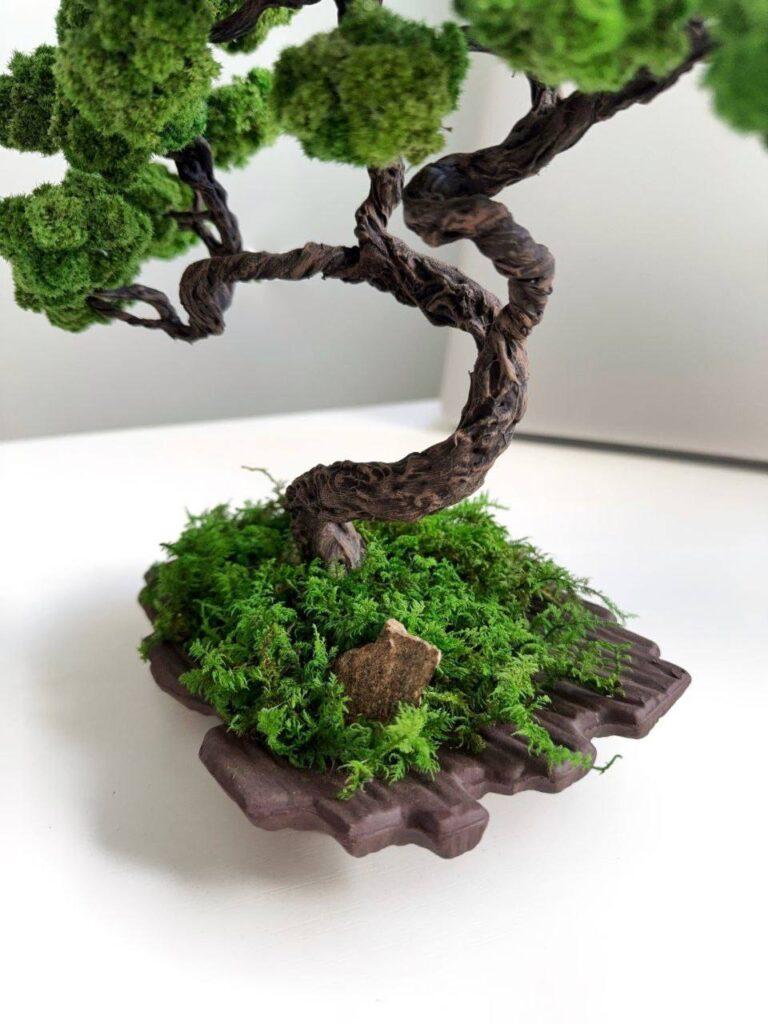 Ця унікальна композиція з деревом на хвилястій керамічній плошці стане стильним доповненням вашого інтер’єру. Стабілізоване дерево зберігає свою форму та колір протягом довгого часу, не потребуючи догляду та поливу. Природна краса дерева у поєднанні з витонченістю хвилястої керамічної плошки робить цю композицію ідеальним вибором для дому, офісу або як незвичайний подарунок.