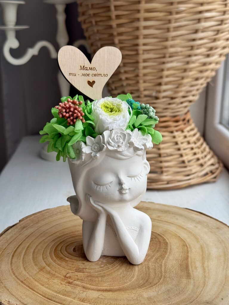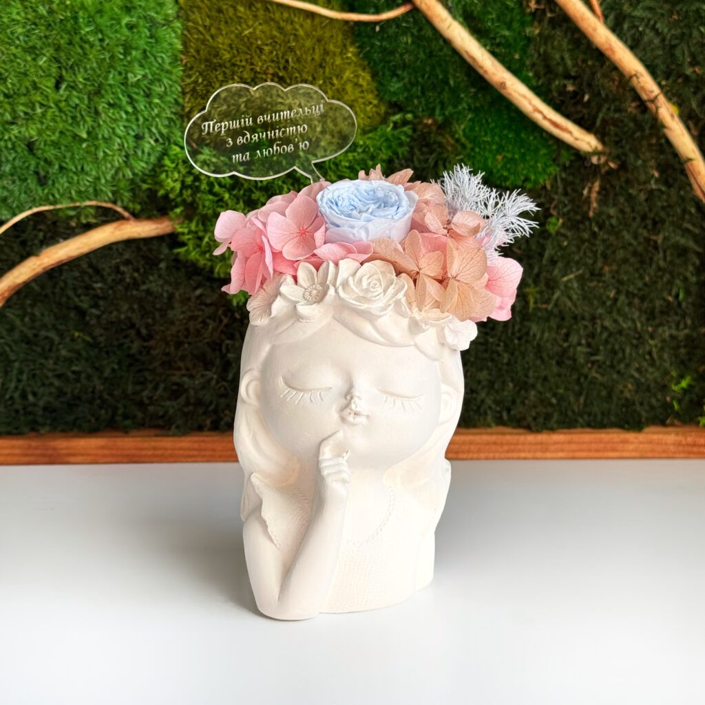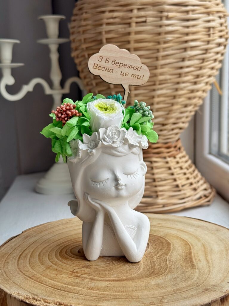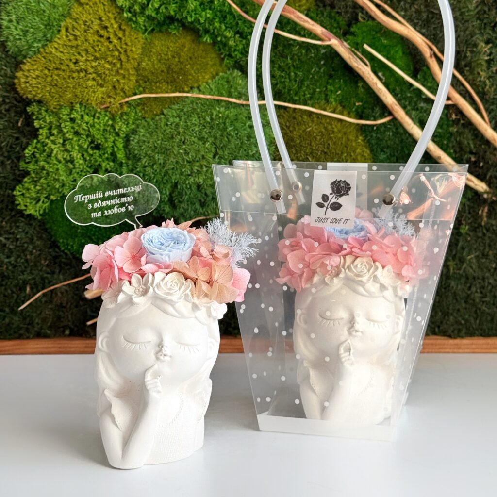 У нас завжди великий асортимент кашпо з букетами зі стабілізованих рослин у наявності.