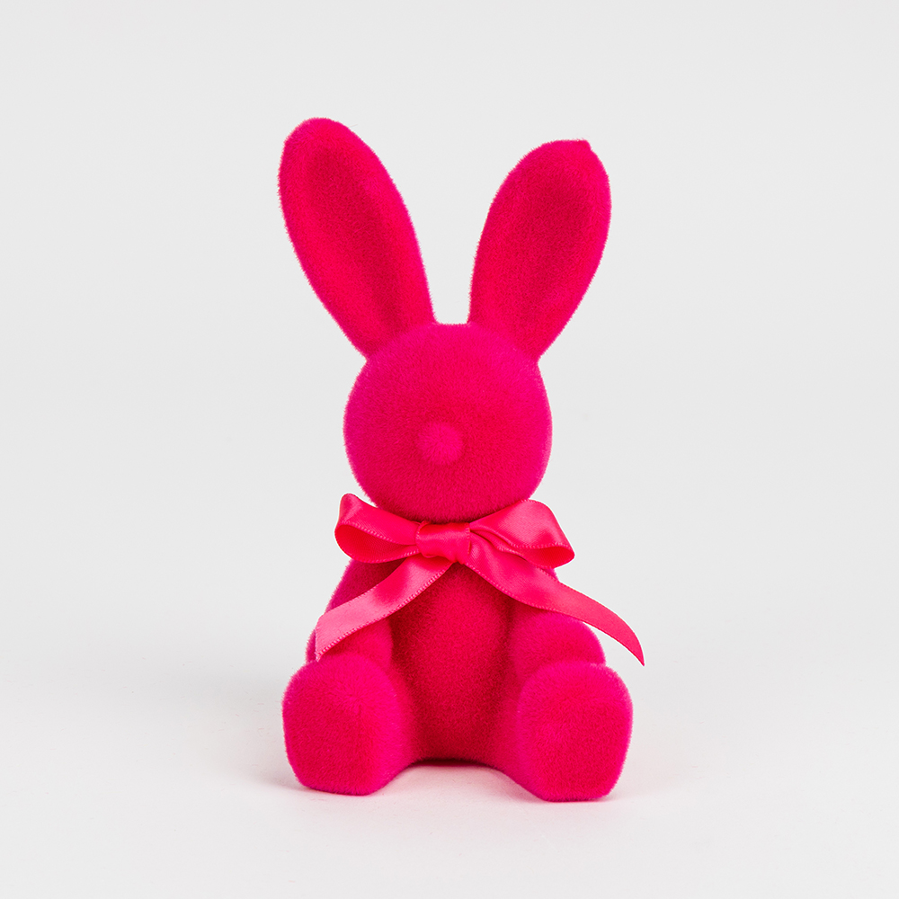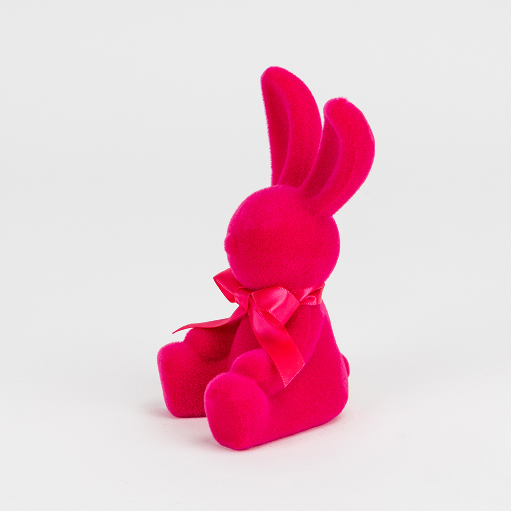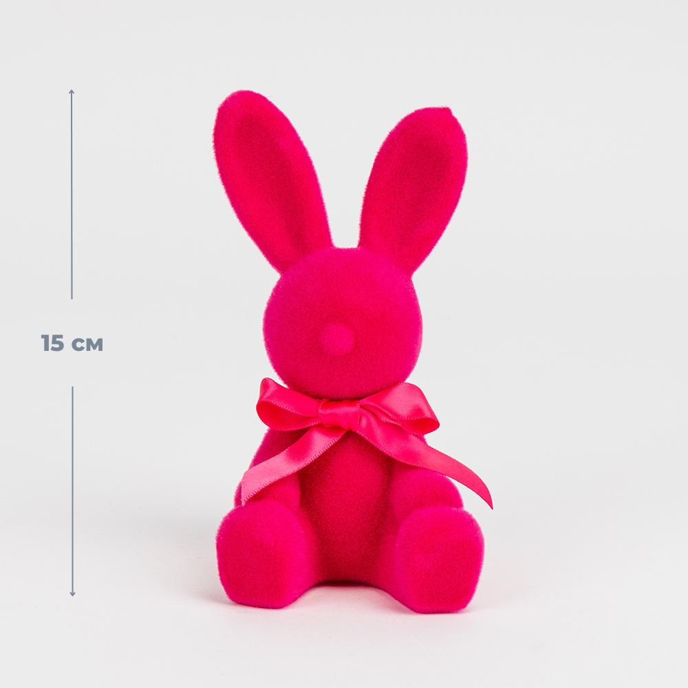 Фігурка флокова Великодній зайчик, темно-рожева, 15 см