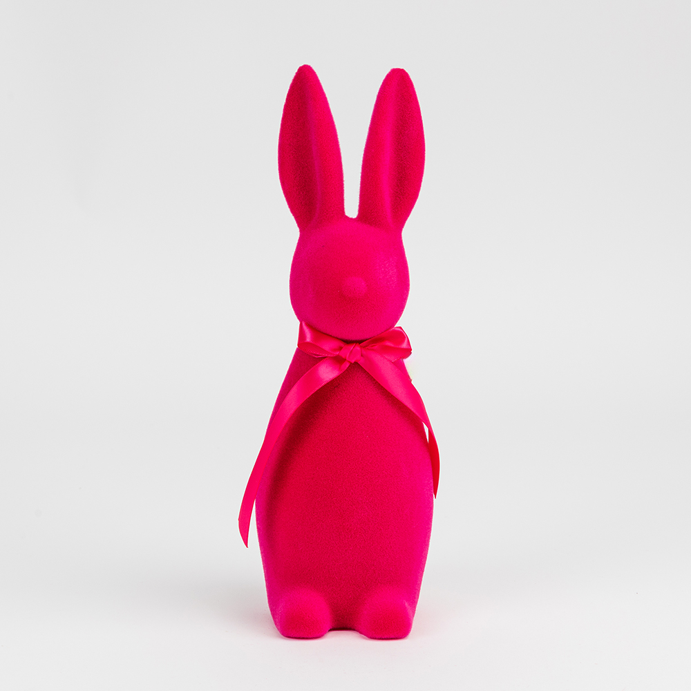 Фігурка флокова Великодній зайчик, темно-рожева, 30 см