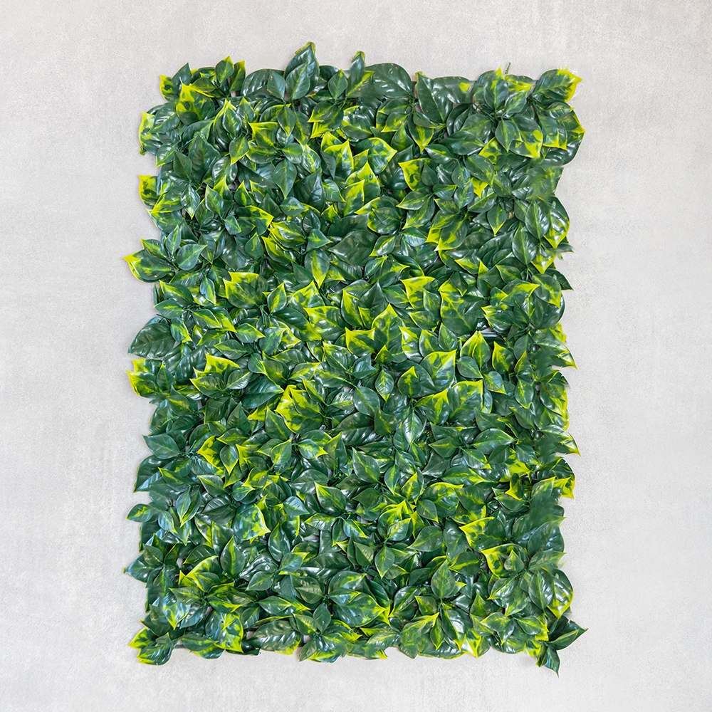 Фітомодуль розміром 40×60 см — це сучасне рішення для створення ефекту живої зеленої стіни без складного обслуговування. Панель виконана з якісної штучної зелені з різноманітною текстурою та відтінками листя, що максимально наближені до натуральних рослин.