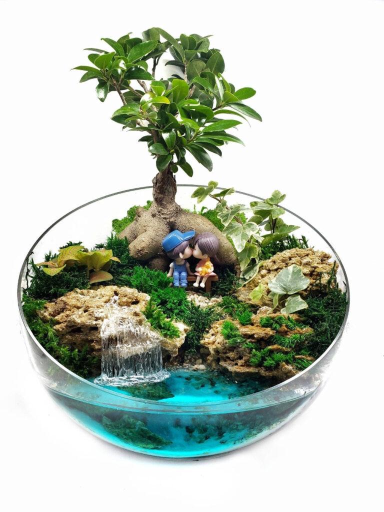 Флораріум-світлячок з Бонсай “Закохані” – 26 см