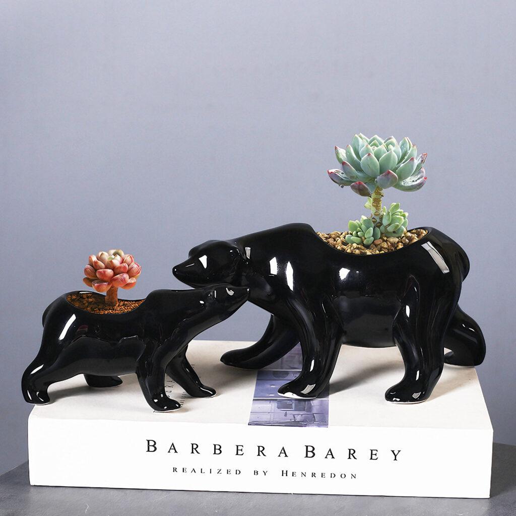 Чарівний набір з двох кашпо у формі чорного ведмедя стане прекрасним доповненням вашого інтер’єру. Виготовлені з високоякісної кераміки, вони мають високу міцність та довговічність. Білі ведмеді прикрашені гладкою поверхнею, що надає їм особливого шарму та робить їх ідеальними для розміщення маленьких рослин і сукулентів.