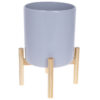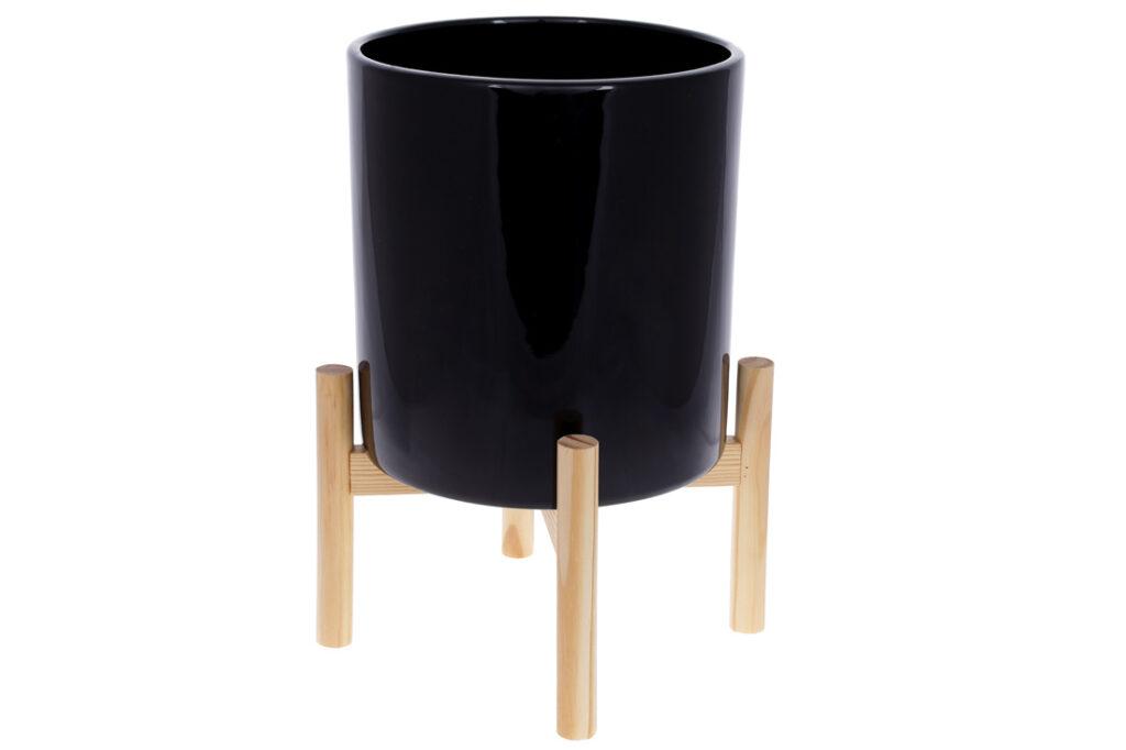 Кашпо керамічне Флора на бамбуковій підставці 37см, колір – чорний глянець