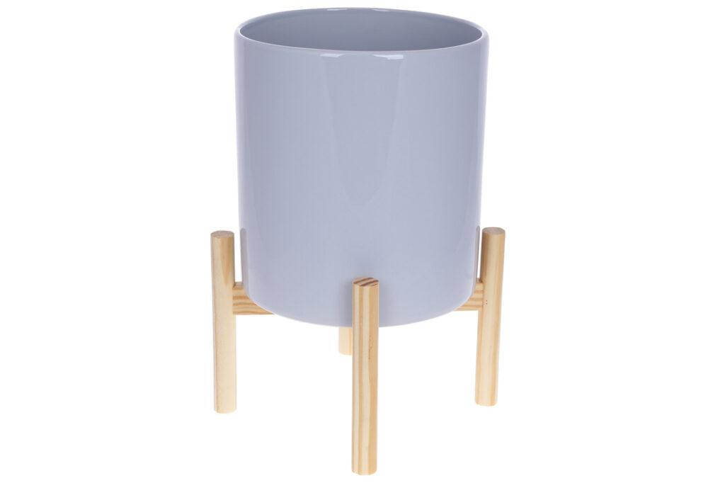 Кашпо керамічне Флора на бамбуковій підставці 37см, колір – сірий глянець
