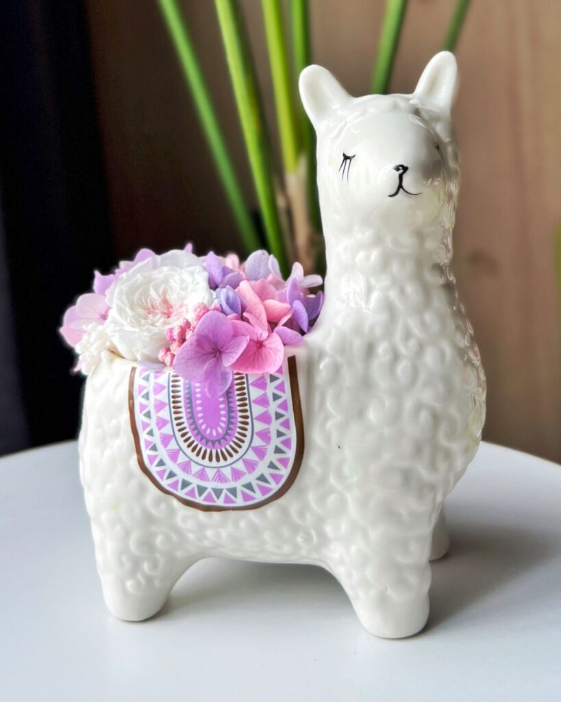Кашпо у формі пухнастої лами з вишуканою рожевою квітковою композицією стане яскравим акцентом у вашому інтер’єрі. Блакитна лама гармонійно поєднується з ніжними відтінками стабілізованих квітів, додаючи простору елегантності та стилю. Це кашпо чудово підійде для декору дому чи офісу, а також стане прекрасним подарунком для поціновувачів оригінальних аксесуарів.