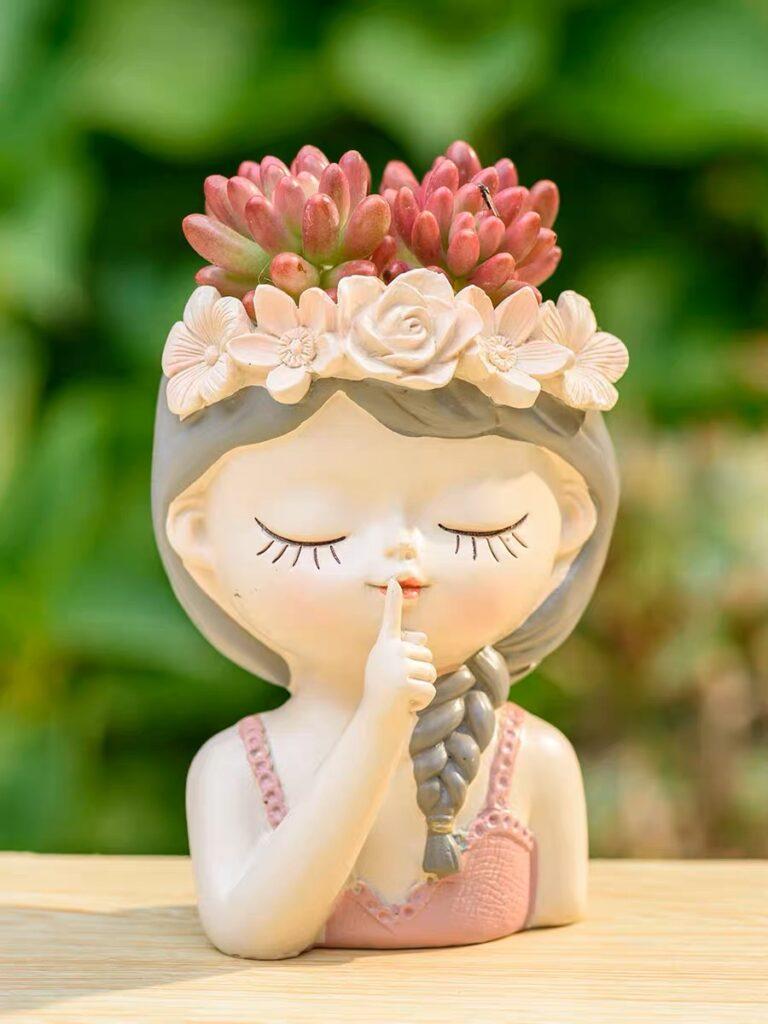 Ізабель, Моллі, Мері та Бет – головні героїні серії “Дівчата у віночках”. Юні леді зображені із заплющеними очима в позах мрійниць. Вінки на головах дівчат символізують весну, молодість, цвітіння життя. Кожен вазонсерії оформлений у ніжних біло-рожевих кольорах. Зелені кактуси не порушать чарівності пастельних відтінків – навпаки, додадуть яскравості та свіжості композиції.