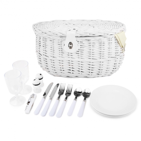 Плетений кошик для пікніка – ідеальний подарунок для справжніх естетів, любителів відпочити на природі. Кошик виглядає дуже естетично і стильно, він додасть атмосфери відпочинку на свіжому повітрі. Кошик виконаний з лози, має підкладку з натурального матеріалу. Кошик досить просторий і містить 2 набори посуду. Ви можете також розмістити необхідну їжу та напої. Кошик для пікніка не тільки гарний і прикрасить Ваше свято, але й екологічний, безпечний для навколишнього середовища.