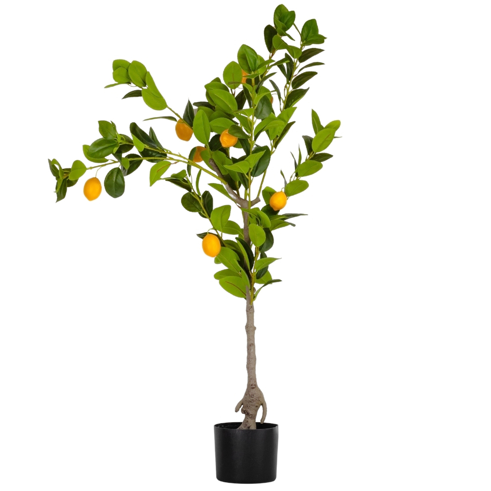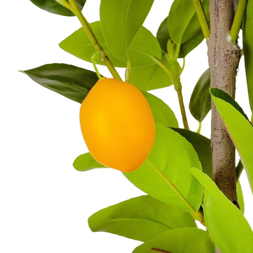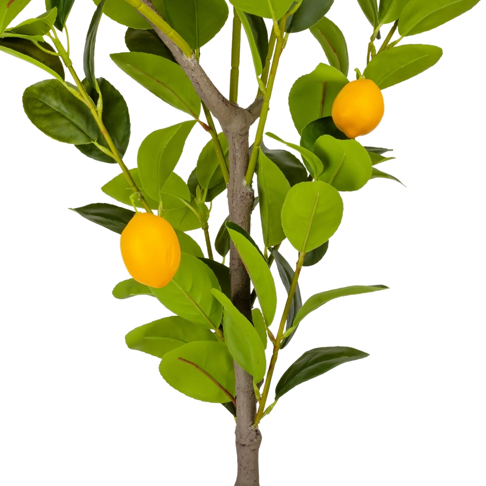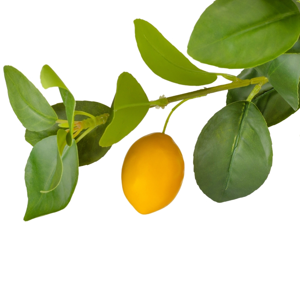 Висота – 107 см. Штучні лимони в горщику з пластику – це чудовий декоративний елемент, який додає свіжості та яскравих кольорів будь-якому інтер’єру. Виготовлені з високоякісного пластику, ці штучні лимони мають реалістичний вигляд і створюють ілюзію справжнього лимонного дерева.