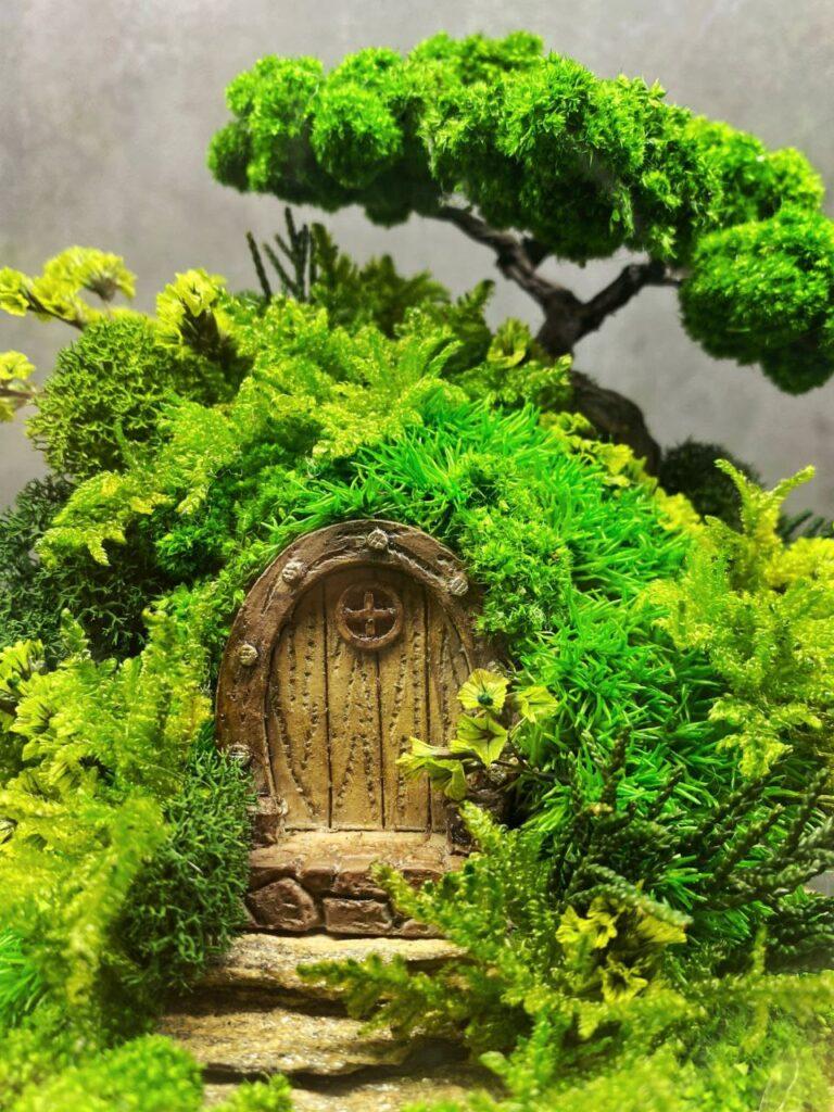 Цей мосаріум ніби переносить вас у казку, де за маленькими дерев’яними дверцятами прихований чарівний ліс. Деталізована композиція з деревами, мохом та фантазійними дверцятками створює атмосферу затишку та загадковості. Вбудоване LED-підсвічування додає магічний ефект, особливо у темний час доби. Унікальний декор, що прикрасить будь-який інтер’єр і стане чудовим подарунком для поціновувачів природи та казок.