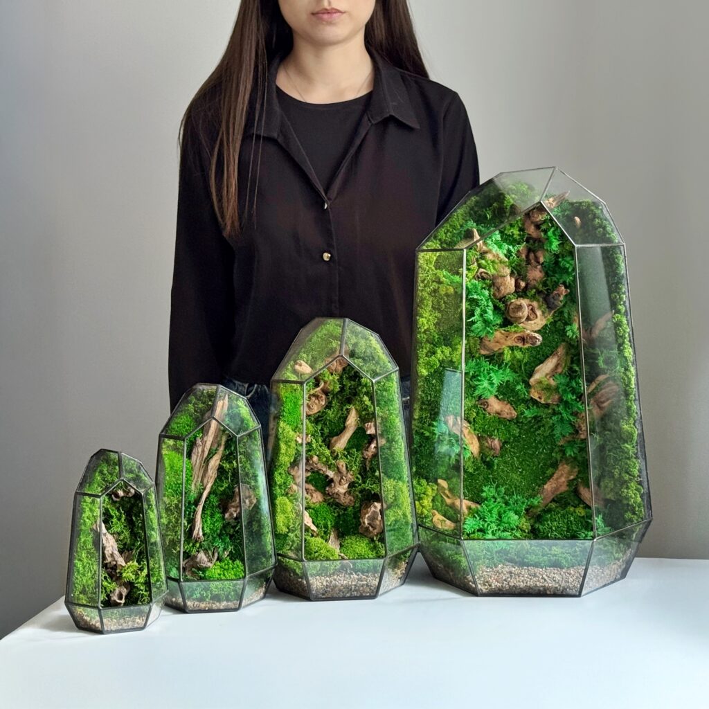 Ця унікальна композиція складається з різноманітних стабілізованих рослин, які зберігають свій природний вигляд і красу без потреби в постійному догляді. Вони залишаються свіжими й зеленими протягом багатьох років, не потребуючи поливу або освітлення. Це ідеальний спосіб прикрасити свій простір природною красою, не витрачаючи час і зусилля на догляд.