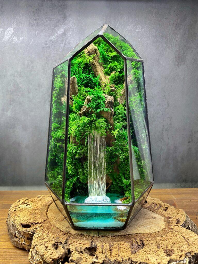 Ця унікальна композиція складається з різноманітних стабілізованих рослин, які зберігають свій природний вигляд і красу без потреби в постійному догляді. Вони залишаються свіжими та зеленими протягом багатьох років, не потребуючи поливу або освітлення. Це ідеальний спосіб прикрасити свій простір природною красою, не витрачаючи час і зусилля на догляд.