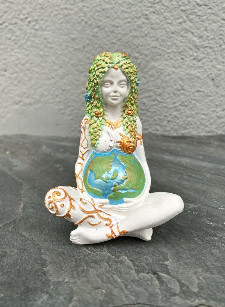 Богиня Гайя (Гея) — прадавній образ Матері Землі, покровительки життя, родючості та внутрішнього балансу. Ця статуетка-оберіг ручної роботи створена для тих, хто прагне глибшого зв’язку з природою, наповнює свій дім енергією любові й спокою, медитує, практикує заземлення або створює свій вівтарний простір.