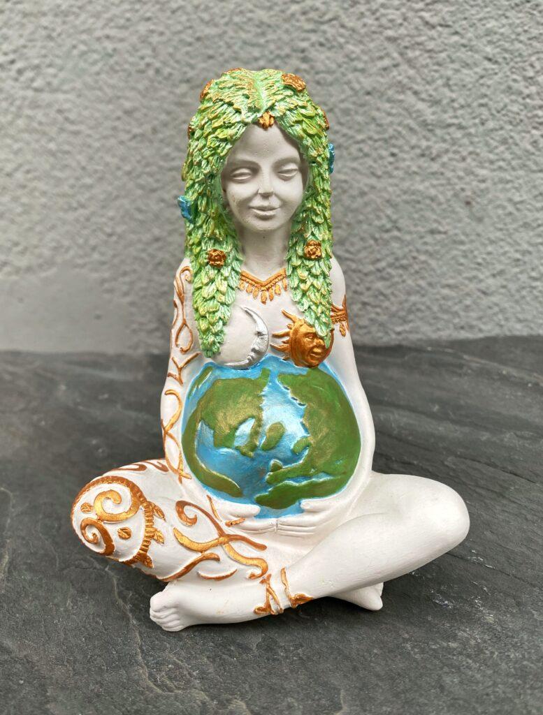 Богиня Гайя (Гея) — прадавній образ Матері Землі, покровительки життя, родючості та внутрішнього балансу. Ця статуетка-оберіг ручної роботи створена для тих, хто прагне глибшого зв’язку з природою, наповнює свій дім енергією любові й спокою, медитує, практикує заземлення або створює свій вівтарний простір.