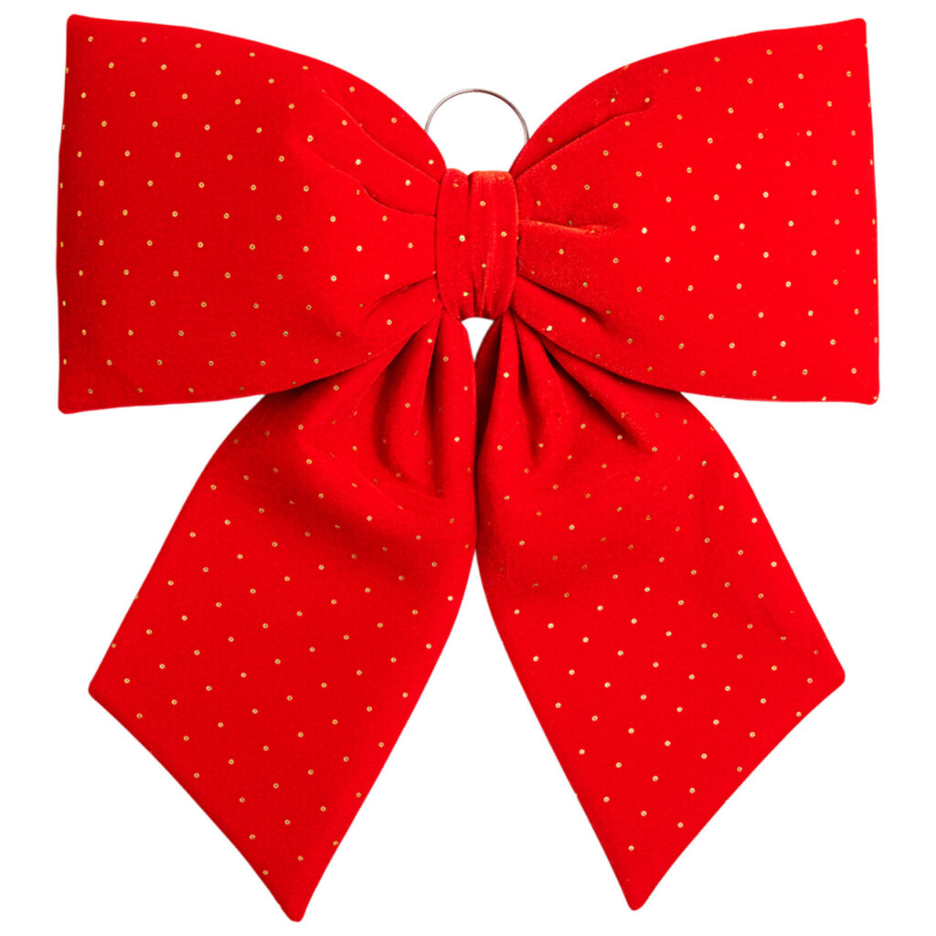 Елегантний червоний оксамитовий бант зі стразами розміром 55х70 см стане виразним акцентом будь-якого святкового оформлення. Яскравий червоний відтінок оксамиту та м’яке свічення страз створюють атмосферу розкоші та урочистості. Бант виконаний із щільного оксамиту з бархатистою текстурою, що надає йому обсягу та форми. Металеве кільце на звороті забезпечує легке та надійне кріплення – на дверях, стінах, вітринах, ялинці або фотозоні. Основні характеристики великого оксамитового банта на ялинку, двері, для декору: Розмір: 55×70 см; Матеріал: оксамит зі стразами; Тип кріплення: металеве кільце; Призначення: вітрин, декор для свят, інтер’єру. Цей оксамитовий бант зі стразами – не просто прикраса, а ефектний акцент, який надасть будь-якому простору святкового та елегантного вигляду. Він підкреслить атмосферу урочистостей і стане стильною деталлю, здатною перетворити інтер’єр одним рухом.
