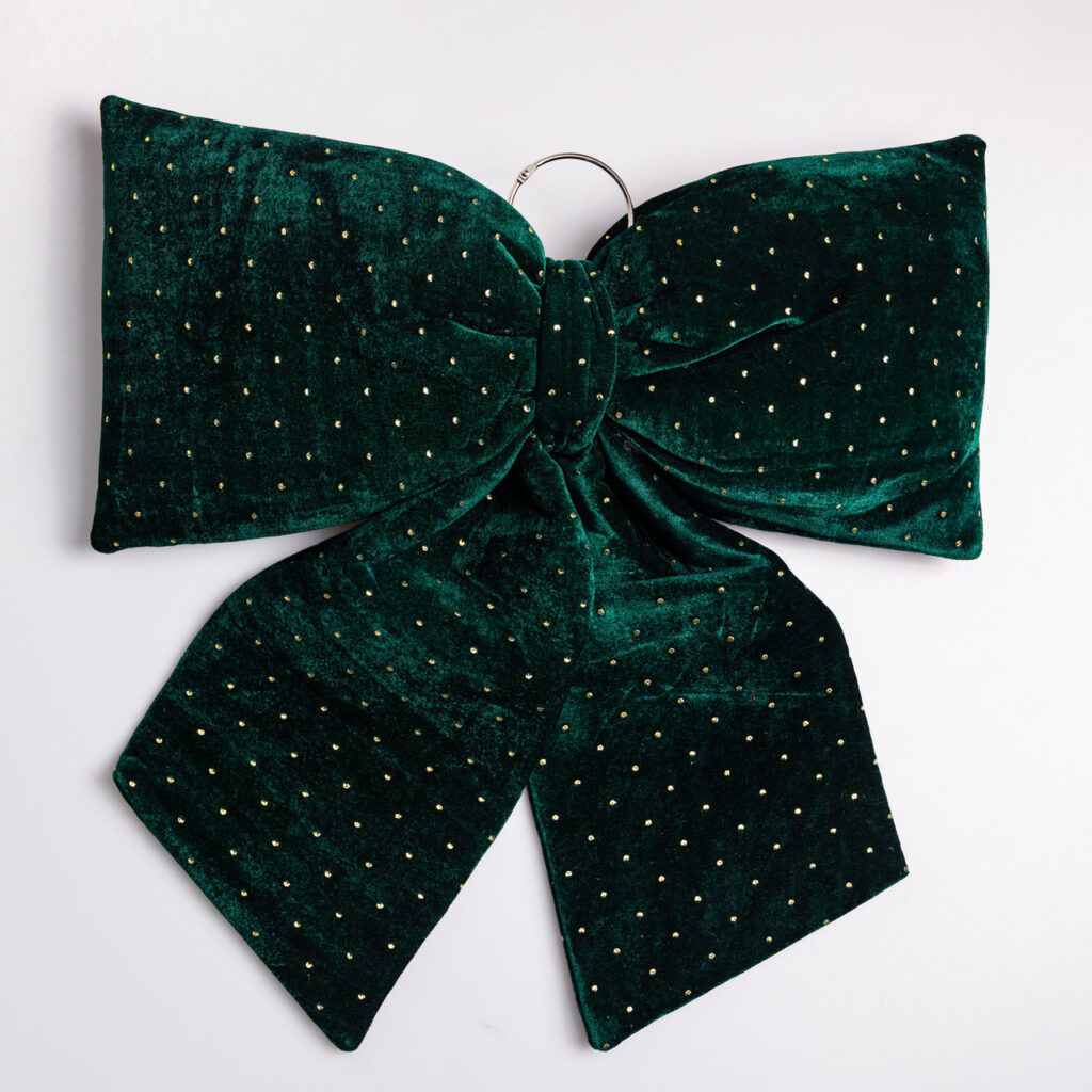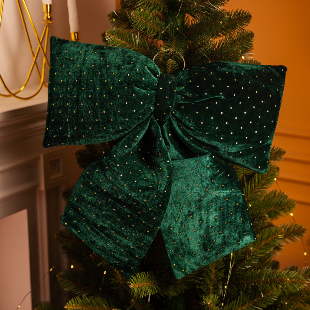 Оксамитовий бант для декору зі стразами на ялинку 55×70 (см) Зелений CR-2-9