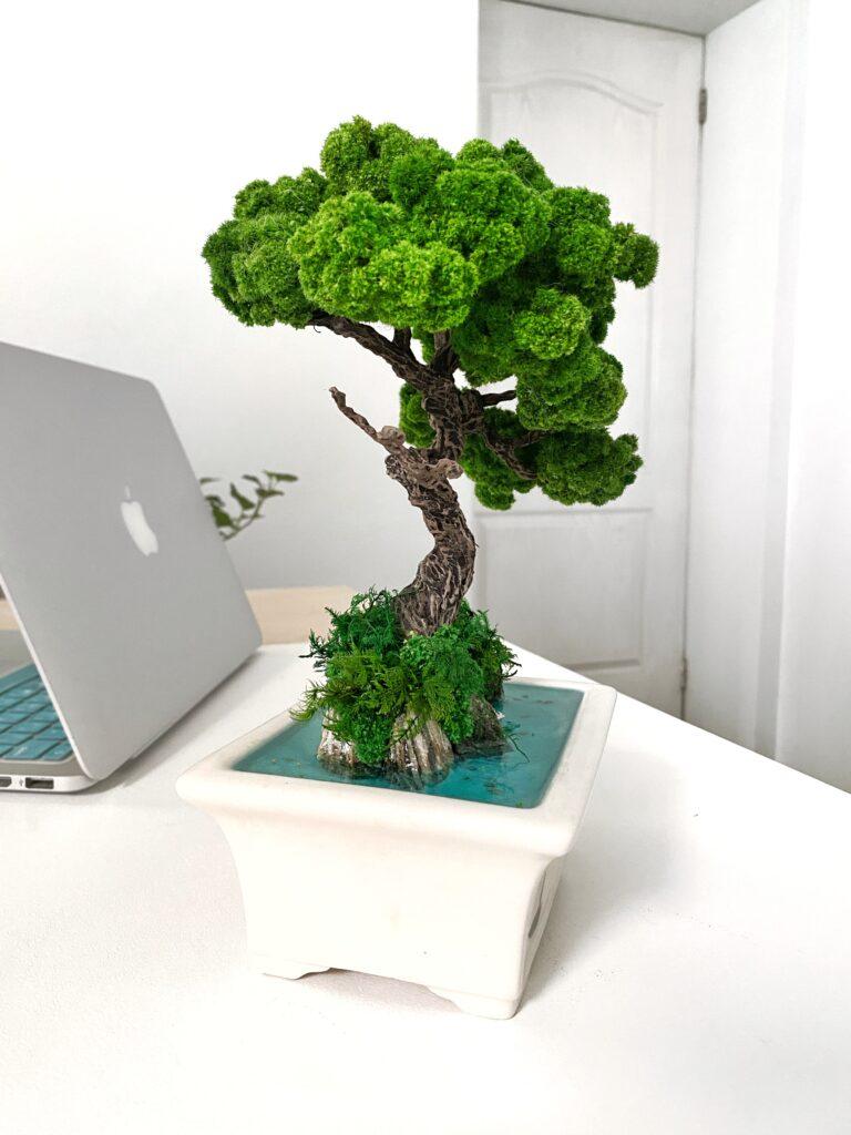 Моссариум изготовлен из стабилизированных растений. Не требует ухода, полива и солнечного света.