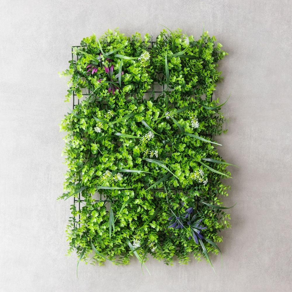 Фитомодуль 40×60 см – декоративная панель из искусственной зелени для вертикального озеленения интерьеров и фасадов. Легкий монтаж, устойчивость к погодным условиям и долговечность делают его безупречным идеальным решением для стильного зеленого пространства.