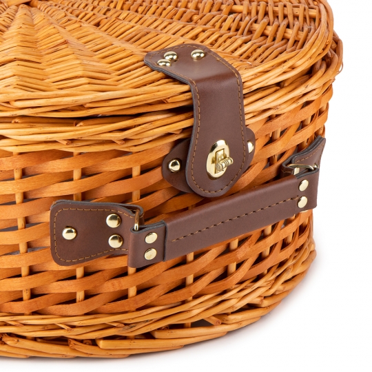 Аксессуары внутри обернуты защитной бумагой и закреплены ремнями из искусственной кожи. Корзина идеально подойдет для атмосферной фотосессии, семейного отдыха на свежем воздухе.