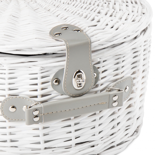 Аксессуары внутри обернуты защитной бумагой и закреплены ремнями из искусственной кожи. Корзина идеально подойдет для атмосферной фотосессии, семейного отдыха на свежем воздухе.
