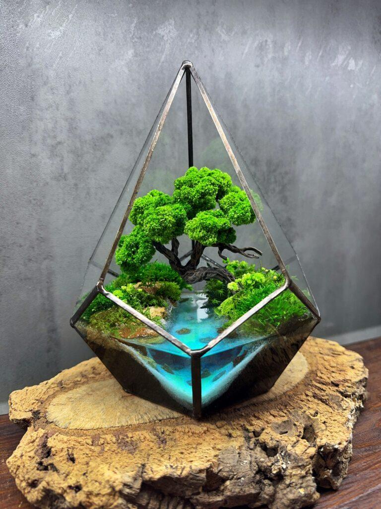 Имитация дерева Бонсай выполнена из стабилизированного мха.