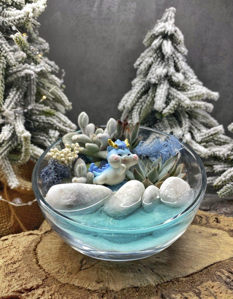Новогодний флорариум с суккулентами «Год Дракона» — это невероятно волшебный и символичный подарок, который приносит в ваш дом частичку изысков и экзотики.