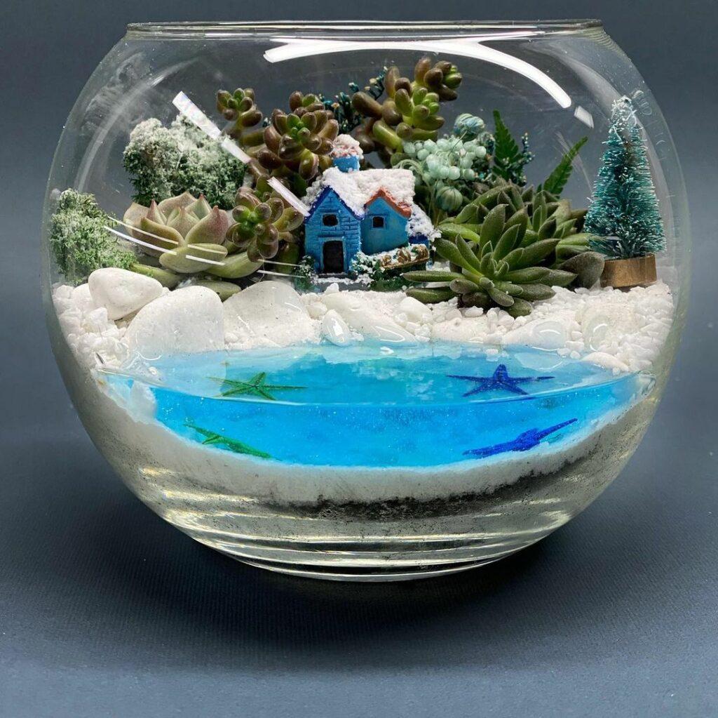 1 отзыв на Новорічний Флораріум зі снігом та водоймою «Будиночок біля озера» — 15 см