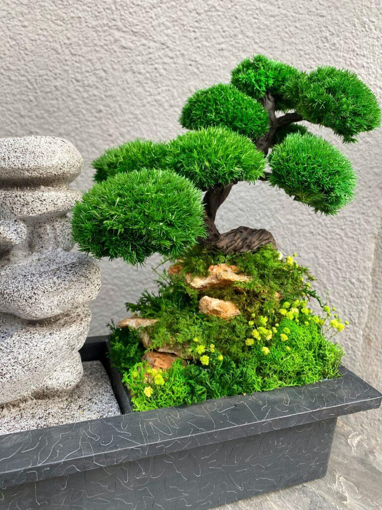 Композиция с из стабилизированными растениями и настоящим водопадом — это интерьерный акцент, который делает ваше окружение не только красивым и стильным, но и создает неповторимую атмосферу спокойствия и релаксации. Выберите этот товар, чтобы наслаждаться одновременно природной красотой и покоем, который он приносит. Он прекрасно впишется в любой интерьер и станет украшением вашего пространства.