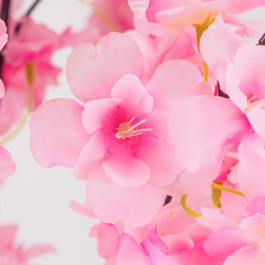 Штучна сакура встановлена у базовий горщик, що дозволяє легко розмістити її у декоративне кашпо відповідно до стилю вашого простору. Це практичне рішення для постійного або сезонного декору, яке не потребує поливу, спеціального освітлення чи щоденного догляду. Дерево надовго зберігає охайний вигляд, насичений колір і декоративність, залишаючись ефектним елементом оформлення у будь-яку пору року.