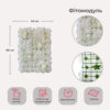 Довжина – 60 см, ширина – 40 см. На зворотній стороні панно решітка з пластику та гачки для зручного кріплення. Декоративне панно зі штучних квітів – це стильний та яскравий елемент декору, який додає природнього шарму та свіжості до будь-якому приміщенню. Панно виготовлене з пластику та імітує природну зелень та квіти. Має класичну прямокутну форму. Декоративні панелі зі штучної зелені додають простору відчуття природи та затишку. Вони можуть бути використані як елементи стінного декору, в якості коврика тощо. Ці панелі є відмінним вибором для тих, хто цінує природну красу, але шукає більш практичні та тривалі альтернативи живим рослинам. Вони легкі у догляді, довговічні та не вимагають регулярного поливу та догляду, що робить їх ідеальним варіантом для декорування будь-кого простору.
