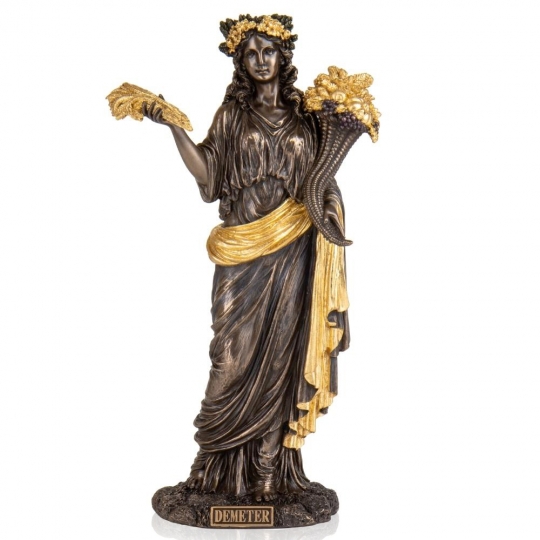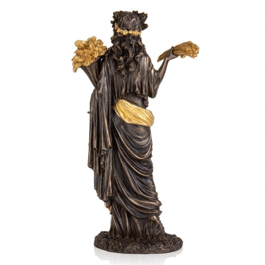 Статуетка «Деметра» – символ богині родючості, покровительки землеробства і материнського початку. Це прекрасний подарунок для начальниці, мами або близької подруги. Виріб виготовлено з полистоуна (штучний камінь), покрито напиленням з бронзи; і упаковано в подарункову коробку, що надає йому престижність і розкіш. Завдяки надійній упаковці, виготовленої з пінопласту з заглибленнями для самих маленьких деталей, Ви можете бути впевненими в безпеці при транспортуванні.