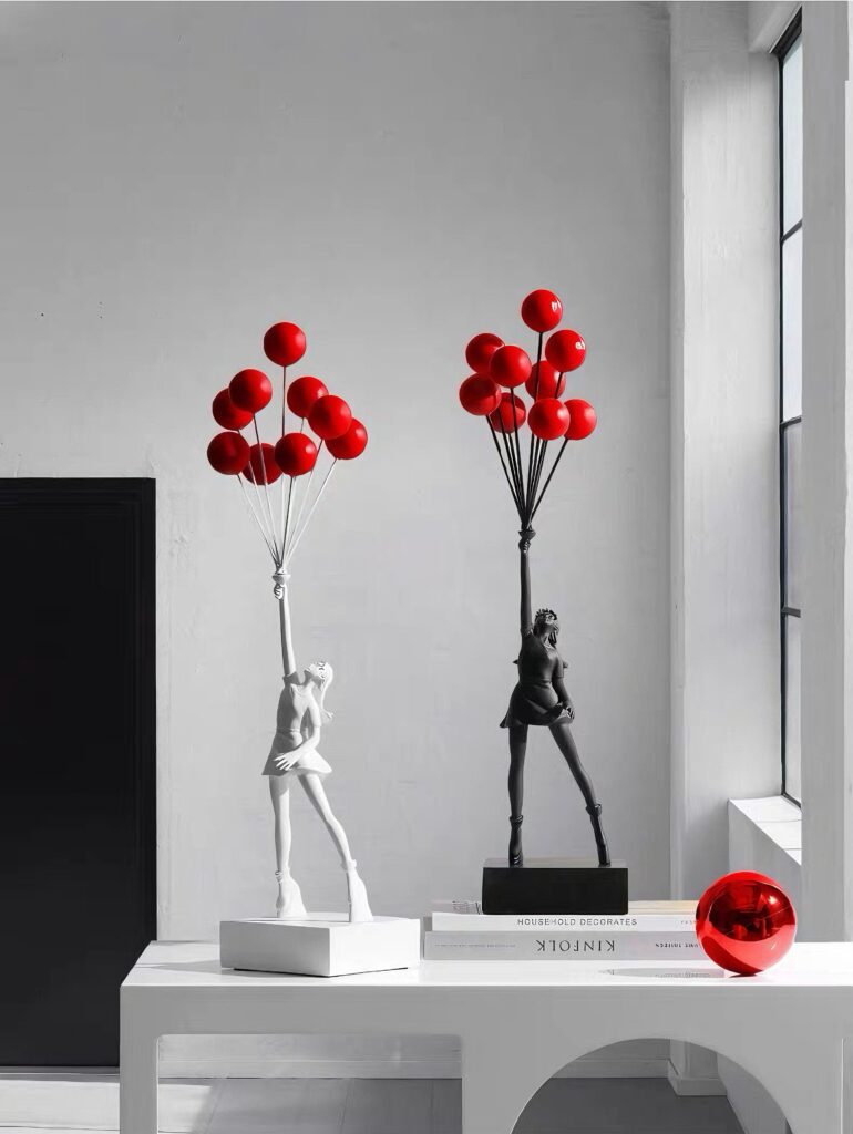 Ця статуетка зображує молоду дівчинку, яка летить над землею, утримуючи у руках кульки, які символізують її бажання та мрії. Кожна деталь цієї роботи створена з уважністю до деталей та експресії. Вона має виразне обличчя, волосся, що рухається на вітерці, і реалістично виглядаючі повітряні кульки, які мають навіть легкий ефект світіння.