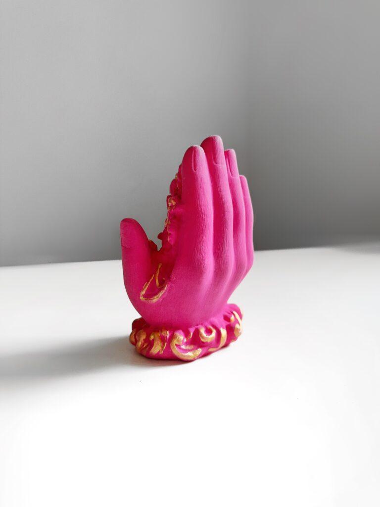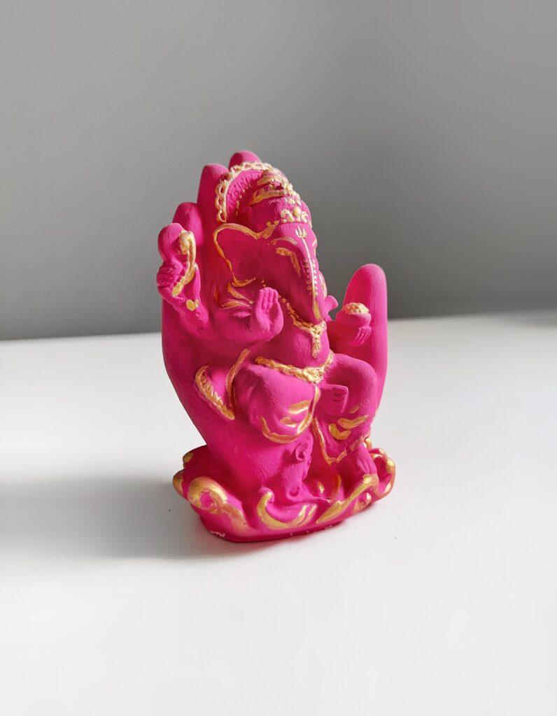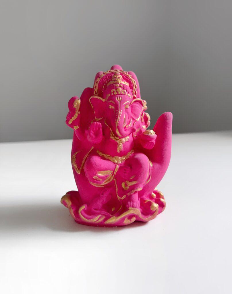 Ця унікальна статуетка зображає Ганешу — бога мудрості та добробуту, що сидить у благословляючій руці. Кожна деталь виконана з любов’ю вручну та ретельно розписана, що надає виробу особливої чарівності та значущості. Завдяки білому покриттю, статуетка стане елегантною прикрасою інтер’єру та символом добробуту у вашому домі. Ідеально підходить як для власного використання, так і як подарунок на особливі події.