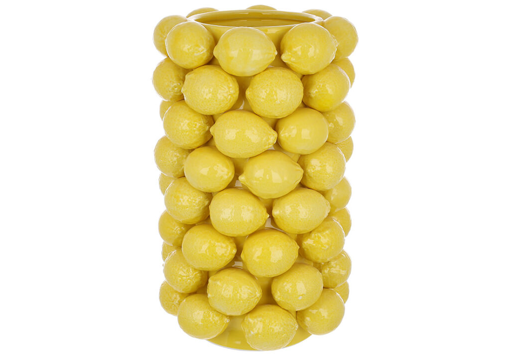 Оригінальна ваза у формі соковитого лимона — яскравий декоративний акцент, що оживить будь-який простір. Виготовлена з міцної порцеляни та покрита глянцевою глазур’ю, вона поєднує виразний дизайн і високу якість виконання. Підійде для кухні, вітальні, літньої тераси або на подарунок поціновувачам нестандартного декору.