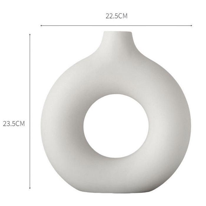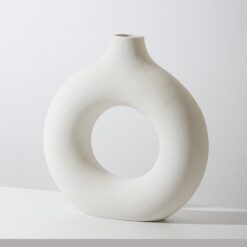 Ця елегантна керамічна ваза “Скандинавська гармонія” втілює дух скандинавського мінімалізму. Завдяки унікальній формі з круглим отвором у центрі, вона додає стиль та вишуканість будь-якому інтер’єру. Виготовлена з високоякісної кераміки, ваза має приємну матову текстуру та ідеально підходить для демонстрації як свіжих, так і сухих квітів. Її розміри (висота 23,5 см, ширина 22,5 см) роблять її помітним і гармонійним елементом декору, що додає нотку сучасності та елегантності.