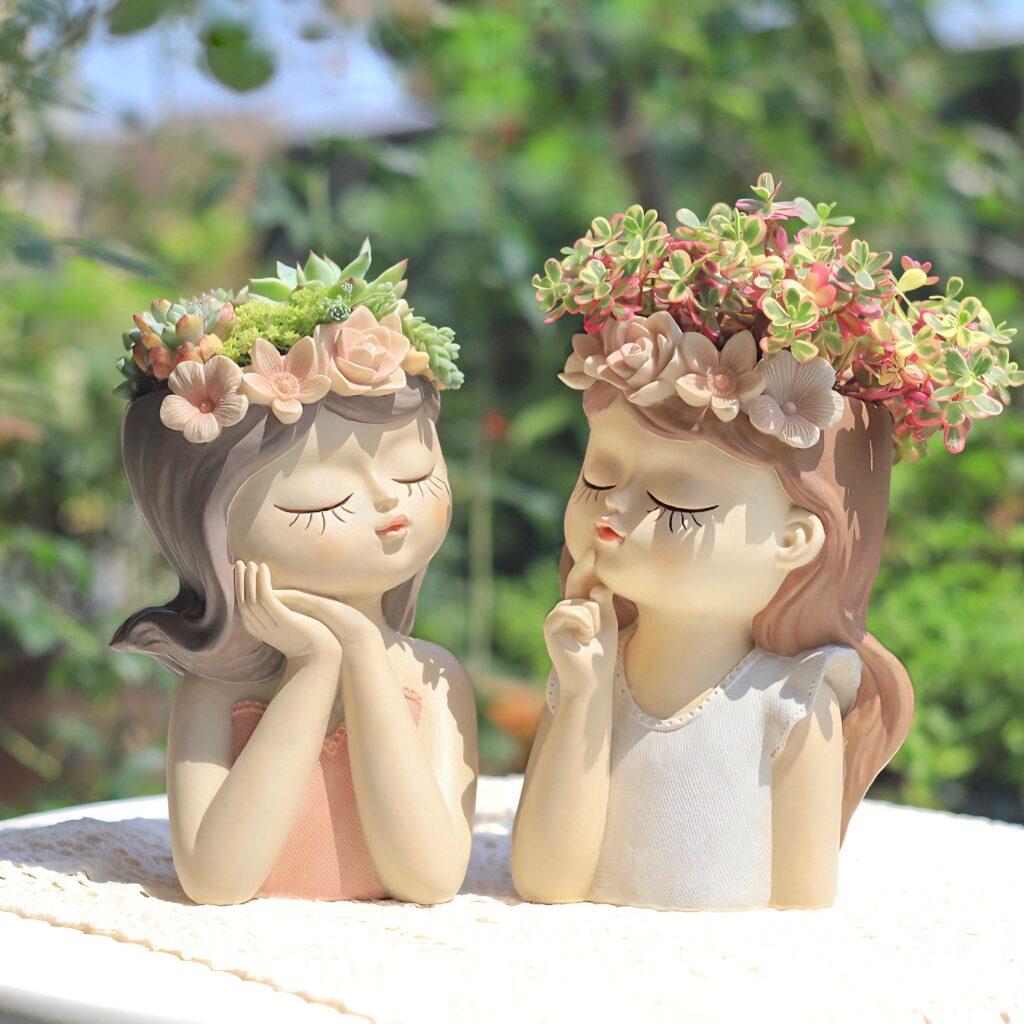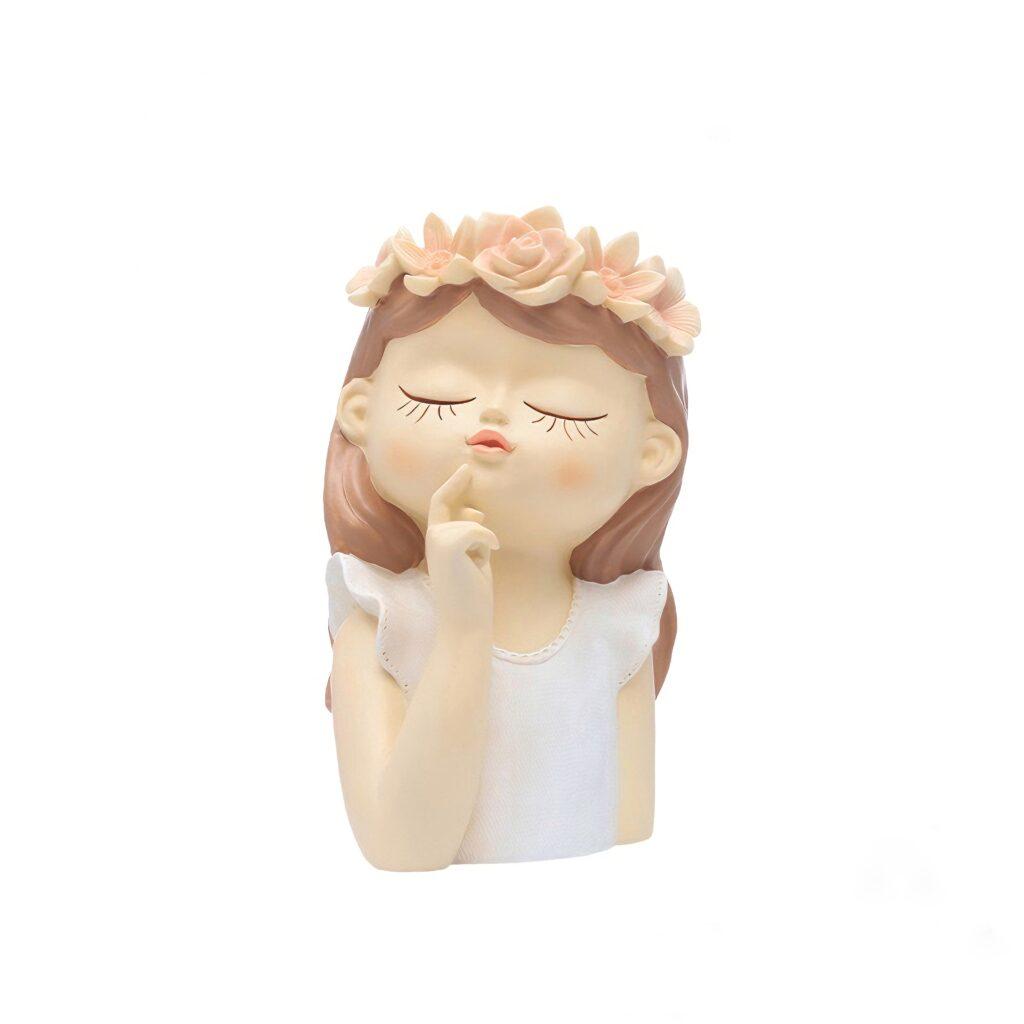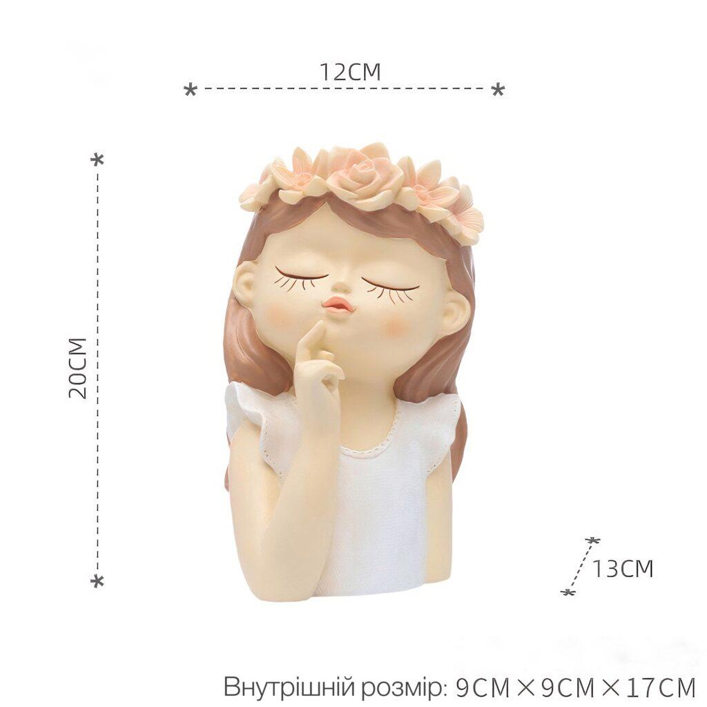 Ізабель, Моллі, Мері та Бет – головні героїні серії “Дівчата у віночках”. Юні леді зображені із заплющеними очима в позах мрійниць. Вінки на головах дівчат символізують весну, молодість, цвітіння життя. Кожен вазон серії оформлений у ніжних біло-рожевих кольорах. Зелені кактуси не порушать чарівності пастельних відтінків – навпаки, додадуть яскравості та свіжості композиції.