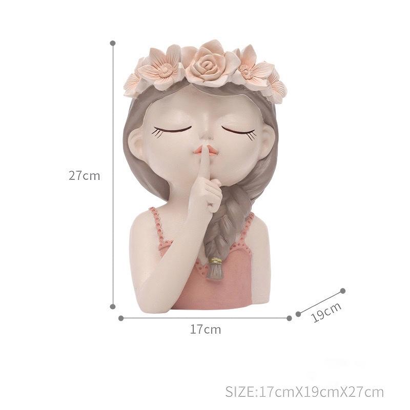 Ізабель, Моллі, Мері та Бет – головні героїні серії “Дівчата у віночках”. Юні леді зображені із заплющеними очима в позах мрійниць. Вінки на головах дівчат символізують весну, молодість, цвітіння життя. Кожен вазон серії оформлений у ніжних біло-рожевих кольорах. Зелені кактуси не порушать чарівності пастельних відтінків – навпаки, додадуть яскравості та свіжості композиції.