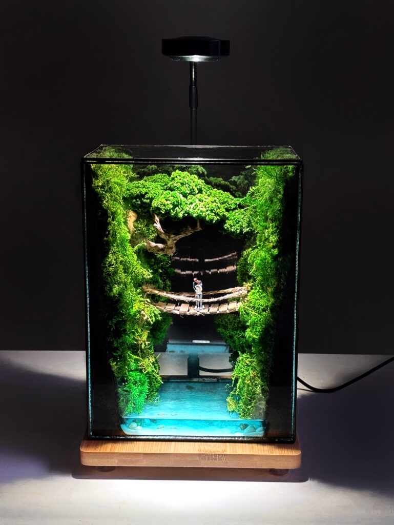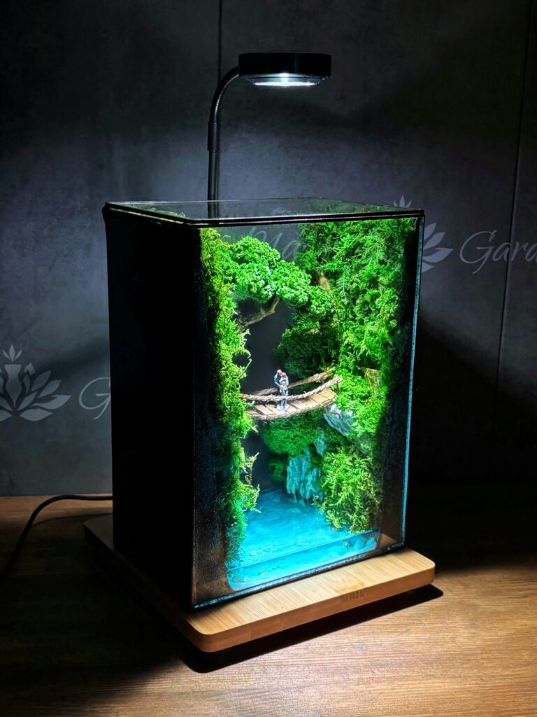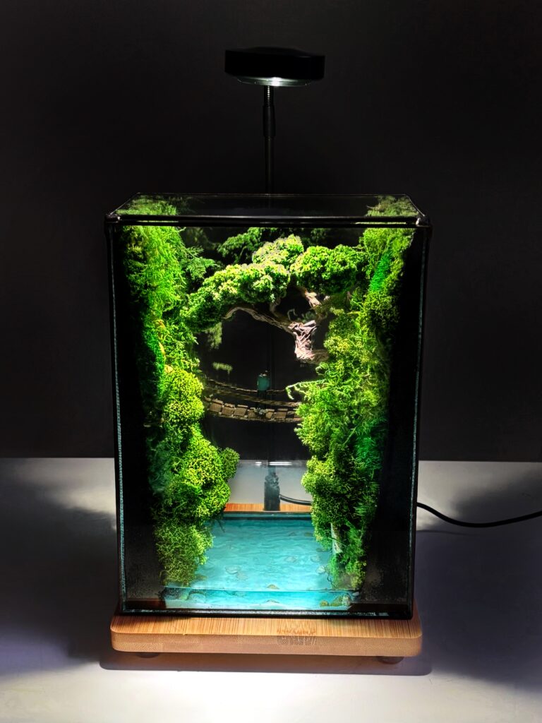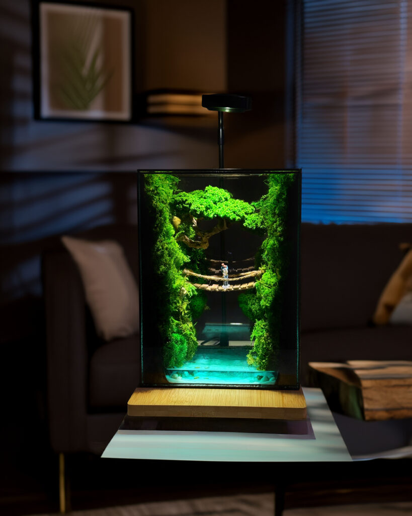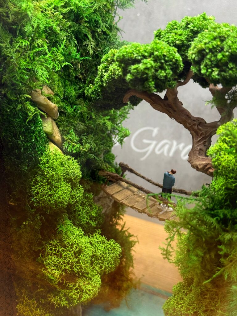 Світло м’яко огортає композицію, підкреслюючи не форму, а стан — тишу, присутність, внутрішню рівновагу. Стабілізований мох, що не потребує догляду, стає символом вічності миті: краса не зникає, коли її не контролюють.
