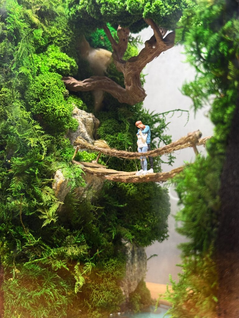 Міст — центральний образ композиції. Це перехід. Крихкий, але впевнений. Саме тут зупиняється людина, щоб відчути момент «тут і зараз». Фігурки на мосту — не персонажі, а відображення кожного з нас: близькість, довіра, спільний шлях, який має сенс лише тоді, коли його розділяють.